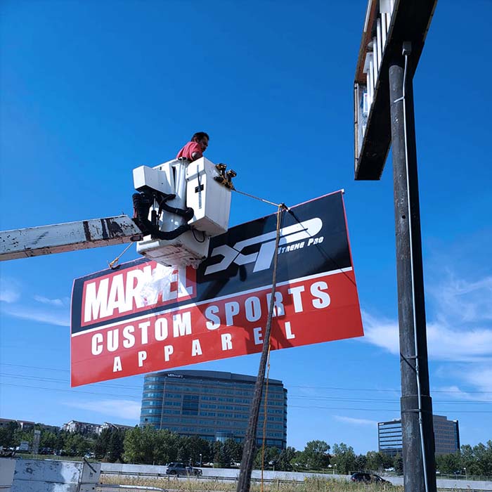 We’re skilled at wall mounting on storefronts and side walls. We’re also adept at the erection of freestanding types such post-and-panel signs, monument signs and more. Illuminated sign wiring is an area of expertise, as are excavations, foundations and footers, postholes and even elevated work with cranes. What’s more, if your new sign is intended to replace an existing one, our sign installers can also help with the removal and disposal of previous signage.